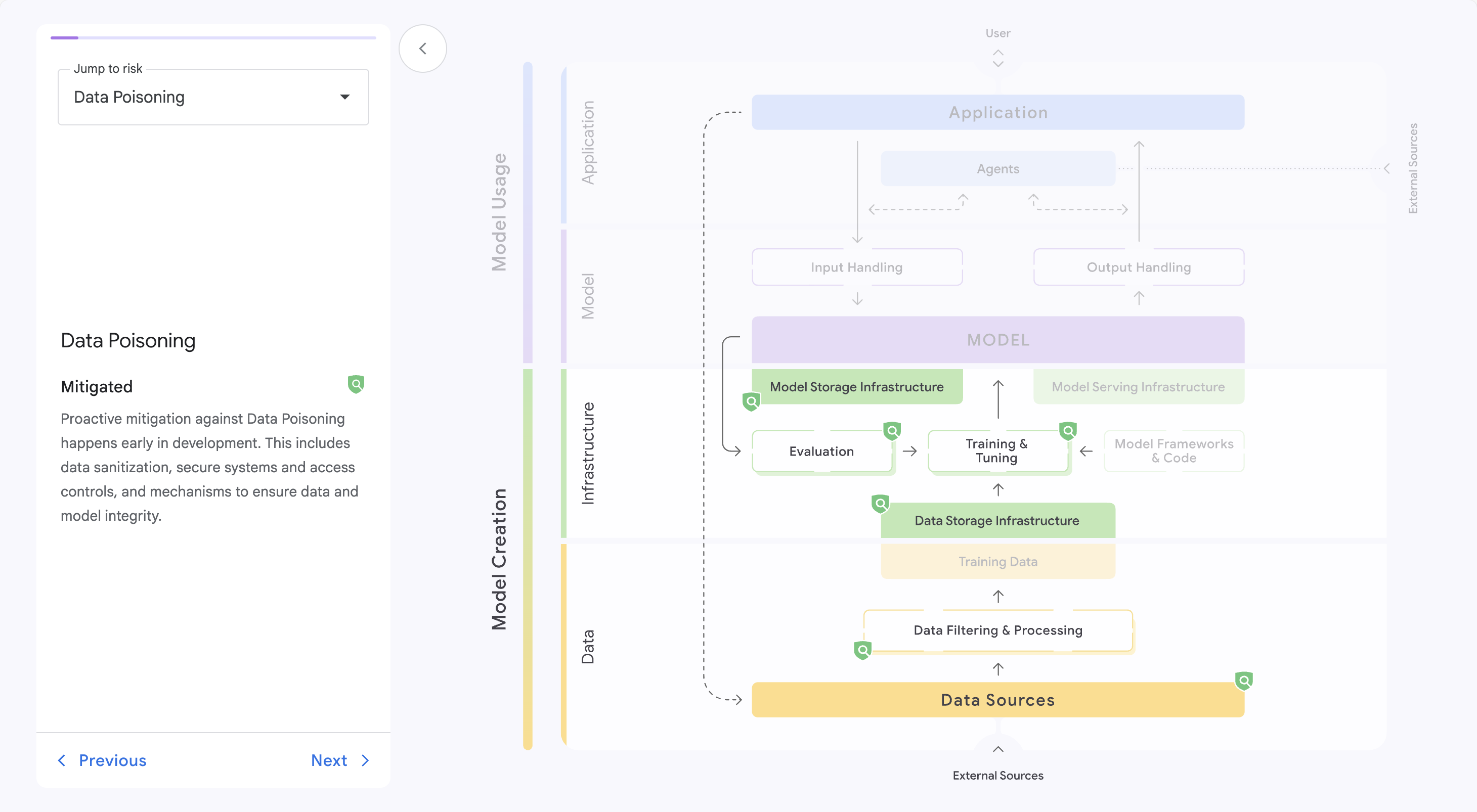 SAIF(安全人工智能框架)是由 Google 制定的一个框架,旨在为管理 AI 安全风险提供一套实用指南。它通过清晰的风险地图、组件分析以及可操作的缓解策略,系统性地应对数据投毒、提示注入等常见威胁。我们认为,它对构建智能体系统过程中不断演化的风险给予了特别及时且有价值的关注。SAIF 提供了一本精炼且可付诸实践的行动手册,团队可以据此强化在大语言模型使用以及 AI 驱动应用中的安全实践。